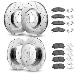 VEVOR Drilled Slotted Front Rear Brake Rotors Pads Kit for Chevy Silverado GMC