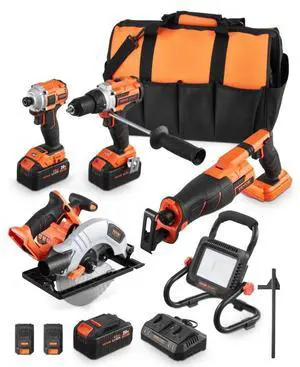 VEVOR Tool Combo Kit 20V Brushless 5-Tool Cordless Power Tool Combo Kit with Batteries
