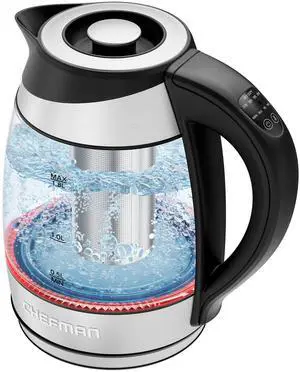 Electric Kettle, 1.5L Borosilicate Glass Countertop Water Heater and Boiler for Coffee or Tea, BPA-Free, Auto Shut-Off, Boil-Dry Protection, Removable and Washable Spout Filter, Black KG83B