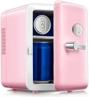 Mini Fridge, 4L/6 Cans Retro Portable Cooler For 120V Home & 12V DC Car Use, Skincare Fridge for Bedroom, Car, Office, Dorm (Pink)
