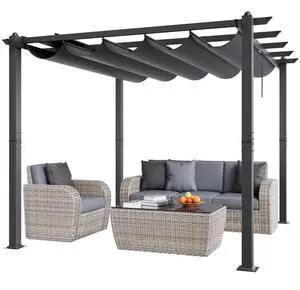 VEVOR 10'x10' Outdoor Retractable Pergola with Sun Shade Canopy Aluminum Gray