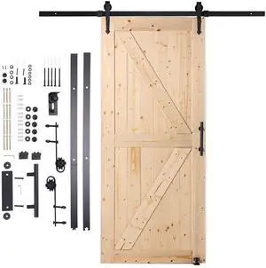 Barn Door and Hardware Kit, 36" x 84" Wood Sliding Barn Door, Smoothly and Quietly, Barn Door Kit with 8-in-1 Floor Guide and Door Handle, Spruce Wood Panelled Slab, Easy to Install