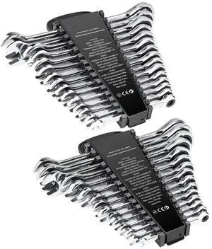 Combination Wrench Set 30 PCS SAE 1/4" to 1", Metric 8mm to 24mm Organizer Rack