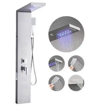 Shower Panel Tower System Stainless Steel Column Rainfall Head Massage Jet 3Mode