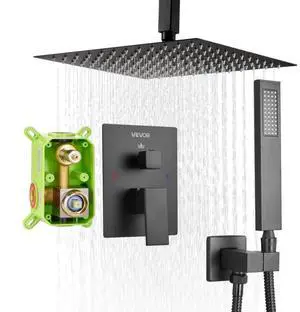 VEVOR Shower Faucet Set 12" Square Rain Shower Head and Hand Set Matte Black