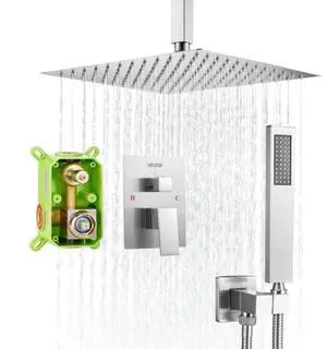 VEVOR Shower Faucet Set 12" Square Rain Shower Head and Hand Set Brushed Nickel