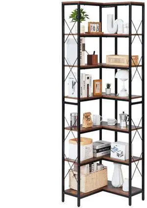 VEVOR 7 Tier Corner Bookshelf Tall Corner Bookcase Storage L-Shaped Organizer
