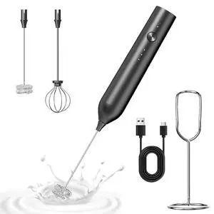 Kitchen Milk Frother Handheld with Stand, 3 Speeds Adjustable Mixer Electric Handheld Frother Wand, Hand Mixer Matcha Whisk Coffee Stirrers for Matcha, Hot Chocolate, Egg, Lattes - Black
