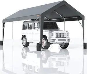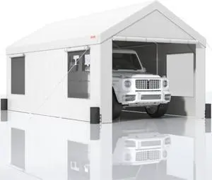 VEVOR Carport, Heavy Duty 12x20ft Car Canopy, Outdoor Garage Shelter with Removable Sidewalls, Roll-up Ventilated Windows & Doors, UV Resistant Waterproof All-Season Tarp for Car, Truck, Boat, White