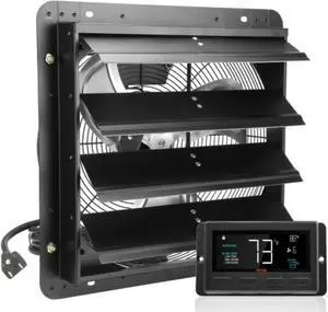 VEVOR Shutter Exhaust Fan, 16'' with Temperature Humidity Controller, EC-motor, 2650 CFM, 10-Speed Adjustable Wall Mount Attic Fan, Ventilation and Cooling for Greenhouses, Garages, Sheds, ETL Listed