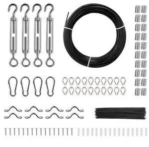 VEVOR Vinyl Coated Wire Rope Kit, 3/32 Cable Through 1/16 Diameter Stainless Steel, 7x7 Strands Construction with 189 Accessories for String Lights, Clothesline, Vine, 164 ft Black