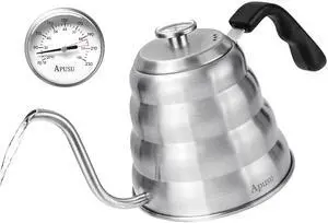 Gooseneck Kettle for Manual Drip Coffee & Tea 40oz Stainless Steel Pour Over Coffee Kettle with Thermometer Tea Kettle for Stovetop,1200ml,6 Cup,Silver,1Pack