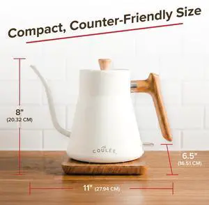 Coffee Gooseneck Kettle, Stainless Steel Interior, Electric Kettle for Boiling Water, Pour Hot Water Over Coffee, Tea, or Matcha, Electric Boiler, Heat Resistant Ergonomic Handle, White