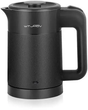 0.6L Small Electric Tea Kettle Lightweight, 20 Ounce Double Wall Hot Water Boiler Stainless Steel Auto Shut-off, 120V Portable Travel Electric Kettle Fast Boil for Tea and Coffee, Black