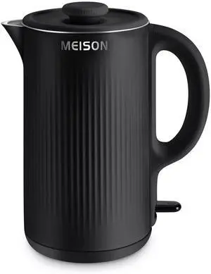 Electric Kettles Stainless Steel for Boiling Water, Double Wall Hot Water Boiler Heater, Cool Touch Electric Teapot, Auto Shut-Off & Boil-Dry Protection, 120V/1200W, 1.7 Liter, 2 Year Warranty (black)