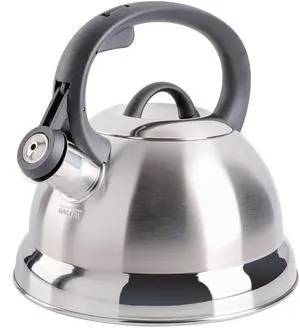 Flintshire, true, Stainless Steel, 1.75 quarts, Hand Wash, Mr. Coffee Flintshire Stainless Steel Whistling Tea Kettle, 1.75-Quart, Brushed Satin