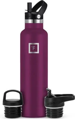 IRON °FLASK Camping & Hiking Hydration Canteens - 3 Lids (Narrow Straw Lid) Leak Proof Vacuum Insulated Stainless Steel - Hot & Cold Double Walled Sports Water Bottle - Burgundy, 24 Oz
