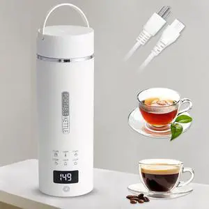Travel Electric Kettle Portable Small Mini Tea Coffee Kettle Water Boiler, Water Heater with 4 Temperature Control,304 Stainless Steel with Auto Shut-Off & Boil Dry Protection, BPA-Free (White)
