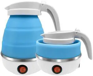 Travel Portable Foldable Electric Kettle, 0.6L Small Collapsible Hot Water Boiler For Coffee Tea (Blue)
