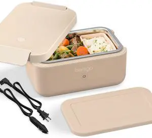 Heat - Electric Lunch Box - Portable Food Warmer for Adults, Heated Lunch Box for Work, Travel, School & On the Go, Plug Into Wall or Car, Ideal for Ages 14+, 12V/24V & 120V Cords (Latte)