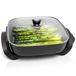 Square Nonstick Electric Skillet With Lid, Aluminum 12x12 Inch Electric Frying Pan 5Qt, Nonstick Cooking Surface, Adjustable Temperature Control, Vented Glass Lid, Heat-Resistant Handle