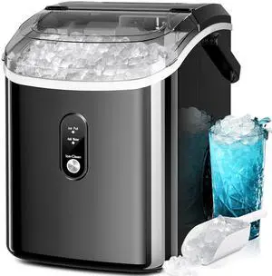 Kismile Nugget Ice Makers Countertop,Portable Ice Machine with Crushed Ice, 35lbs/Day,Self-Cleaning,One-Click Operation for Home Use(Silver) Glossy Black