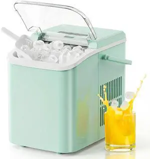 Ice Makers Countertop with Handle, Portable Ice Machine, 9 Bullet Ice Cubes in 6 Mins, 26lbs in 24Hrs, Auto-Cleaning, with Basket and Scoop, for Home, Kitchen, RV, Camping, Green- Brand: NEWBULIG
