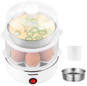 2-tier Egg Cooker Large 14 Eggs Capacity, Electric Rapid Egg Maker, Auto Off for Hard Boiled Eggs, Poached Eggs, Steamed Vegetables, Seafood, Dumplings