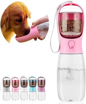 Dog Water Bottle with Food Container, Portable Leak Proof Pet Water Dispenser for Walking Hiking Travel, Puppy Essentials Accessories for Small Large Dogs, Dog Gifts (10oz/15oz/19oz)