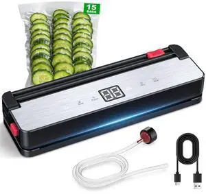 95Kpa Vacuum Sealer Machine for Food with Bags, 12-in-1 Food Saver Vacuum Sealer with Double Heat Seal, Built-in Cutter,Accessory Hose, Bag Storage,10 Bags, 1 Bag Roll & Marker Pen,App Control
