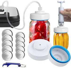 Mason Jar Vacuum Sealer and Accessory Hose Compatible with FoodSaver Vacuum Sealer Portable Hand Pump for Jars Regular & Wide Mouth and Lid, for Food Storage