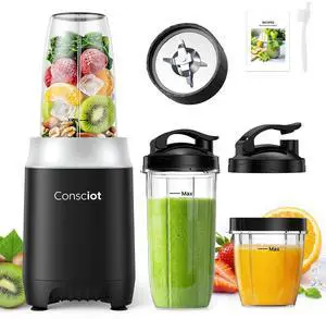 Consciot CB08 11-Piece Blender for Kitchen and Personal Size, Blend Shakes and Smoothies, Frozen Drinks, Baby Food, Spreads & More, 3 Portable To-Go Cups & 2 Spout Lids & 1 Solid Lid, 900 Peak Watts