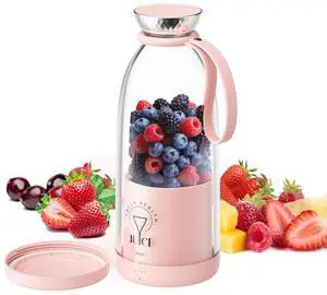 Portable Blender, Personal Blender for shakes and smoothies, Personal Size Blenders Cordless Mini Travel Fruit Juicer Cup Mixer, Electric Smoothie Blender Maker, 13oz Bottles, USB Rechargeable (Pink)