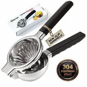 Stainless Steel Lemon Squeezer, Manual Citrus Juicer with Non-Slip Handles, 304 Grade Steel Large Manual Lemon Press Juicer, Ergonomic Design Handheld Lime Squeezer Fruit Juicer