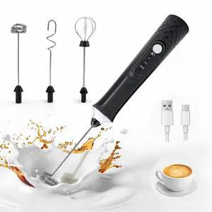 Milk Frother Rechargeable,Handheld Milk Frother, 3 Heads Rechargeable Mini Drink Mixer Stirrers, 3 Speed Adjustable Coffee Frother Wand, Drinks mixer electric handheld milk frothe