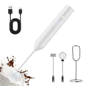 Milk Frother Handheld, Rechargeable Coffee Frother Wand with 2 Stainless Whisks 3 Speeds, Drink Mixer, Electric Foam Maker, Hand Mixer for Lattes, Cappuccino, Matcha, Egg, White