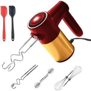 6-Speed Electric Hand Mixer with Whisk, Traditional Beaters, Dough Hooks, Snap-On Storage Case, 275 Watts, Red
