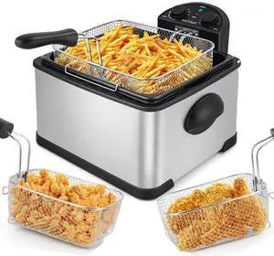 Features: Quick Heating: 110V 2500W Deep Fryer, upgraded longer heating tube for quick heating up, fry 3 Lbs chips in less than 15 minutes^^Large Capacity: Recommended oil capacity up to 6 L^^Easy to Operate: Temperature knob for selecting temperature simplifies the operation