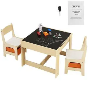 VEVOR Kids Table and 2 Chairs Set, Toddler Table and Chair Set, Children Multi-Activity Table for Art, Craft, Reading, Learning, 1 Table and 2 Chairs