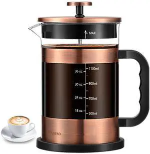 French Press Coffee Maker 51oz 304 Stainless Steel French Press with 4 Filter, Heat Resistant Durable, Easy to Clean, Borosilicate Glass Coffee Press, Copper