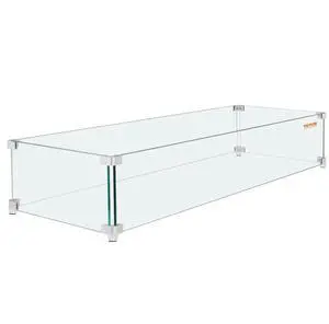 VEVOR Gas Fire Pit Wind Guard for Square Fire Table, 23.5 x 7.5 x 6.5 inch Clear Tempered Wind Guard for Firepits, 0.31 inch Thick Square Glass Shield, Glass Panel with Hard Corner Bracket & Feet