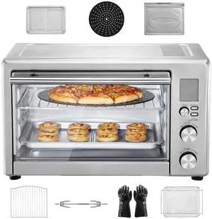Commercial Convection Oven, 47L/43Qt, Half-Size Conventional Oven Countertop, 1600W 4-Tier Toaster with Front Glass Door, Electric Baking Oven with Trays Wire Racks Clip Gloves, 120V, ETL Listed