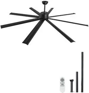 VEVOR 72 Inch Ceiling Fan with Light 6-Speed Remote Control Reversible Motor Black