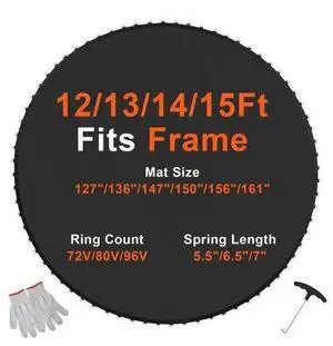 VEVOR Replacement Trampoline Mat Fits 13ft Frame 80 V-Rings 7" Spring Length