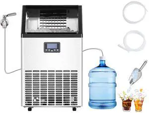 Commercial Ice Maker Machine, 100lbs/24H Ice Maker Machine with 33lbs Storage Capacity, 45 Ice Cubes in 15 Minutes, LED Digital Display Freestanding Self-Cleaning for Bar Office Restaurant