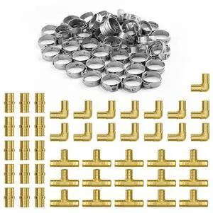 VEVOR Pipe Fittings 3/4" 45PCS (Straight,Elbows,Tees) Brass Push-Fit for Air