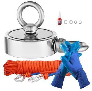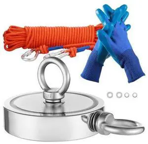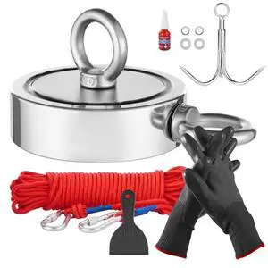 VEVOR 1000 LBS Strong Fishing Magnet Kit Double-Sided Pull Force and Rope Carabiner