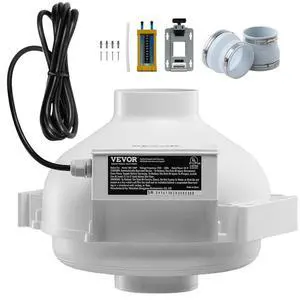 VEVOR 4" to 4.5" Radon Mitigation Fan System Kit Quiet 260 CFM Inline Duct Waterproof