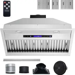 Insert Range Hood, 900CFM 4-Speed, 30 Inch Stainless Steel Built-in Kitchen Vent with Touch & Remote Control LED Lights Baffle Filters, Ducted/Ductless Convertible, ETL Listed