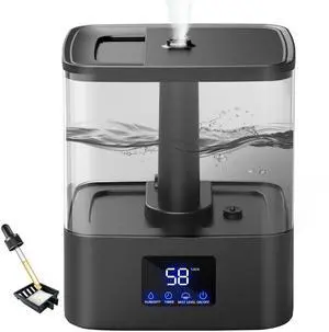 KZF 4L Top Fill Humidifiers for Bedroom & 60H Runtime - Cool Mist Humidifier, 3 Mist Levels, 8H Timer, Essential Oil Tray, Humidity Display, Quiet for Bedroom, Baby, Plants, Large Room (Black, 4L)